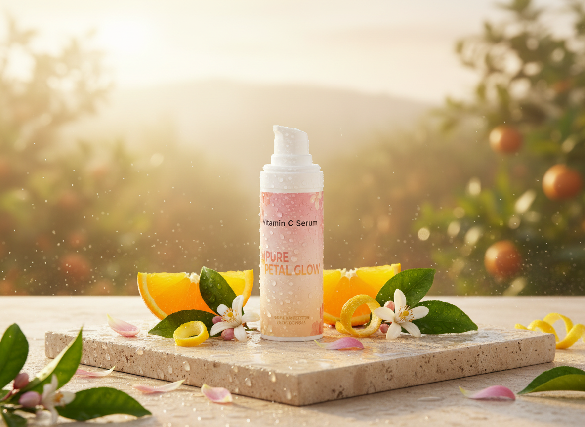Nature-inspired for your skin—powered by Vitamin C that performs. Pure Petal Glow Vitamin C Serum pairs brightening results with a botanical-first feel, helping skin look clearer, more even, and visibly radiant. Think fresh-citrus energy meets petal-soft glow: lightweight, fast-absorbing, and built for daily use so your complexion looks lit-from-within, not covered up.